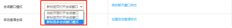 首先选择会话窗口打开的方式,分为三种:当前页面打开、新标签页打开和新标签多会话窗口模式。